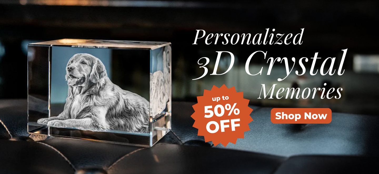 Create personalized 3D crystal memories from your favorite pictures of your pet! Your pet will always be a companion - the sweetest 3D memory you'll find!