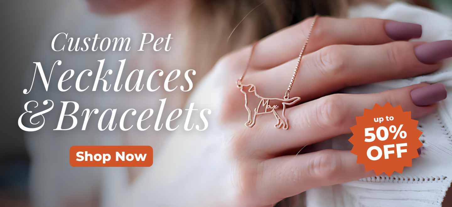 Check out our jewelry collection, custom pet necklaces and bracelet.