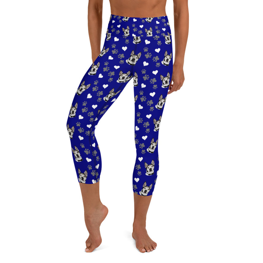 These custom pet printed yoga capri leggings with a high, elastic waistband are the perfect choice for yoga, the gym, or simply a comfortable evening at home.